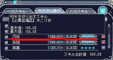 いや伐採100になってもマスターマイナーな奴なんですけどね。